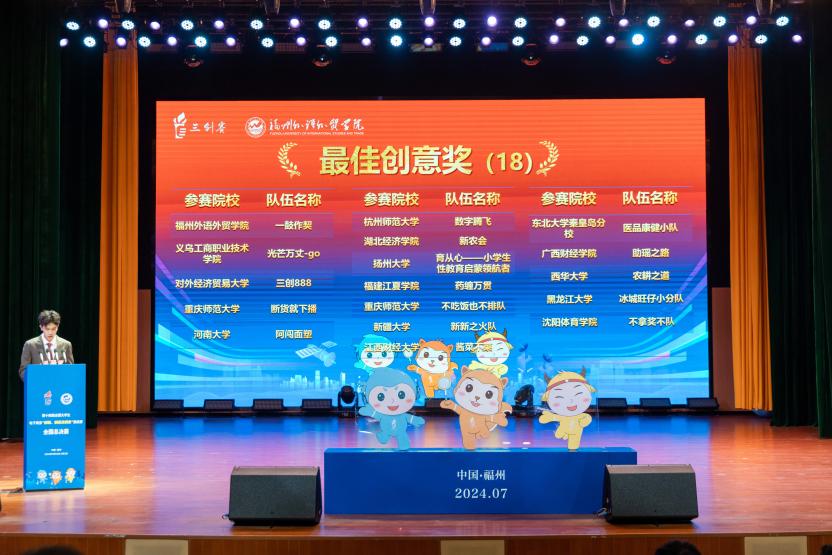 8月1日至2日,第十四届全国大学生电子商务“创新、创意及创业”挑战赛(以下简称“三创赛”)常规赛全国总决赛在福州外语外贸学院圆满举行。我校金文进、李春丽老师指导的“芒人阿松---芒果全产业升级助农共富实践者”项目荣获特等奖第一名,全国冠军。团队还荣获最佳创新奖、最佳创意奖和最佳创业奖,指导老师荣获最佳指导老师。